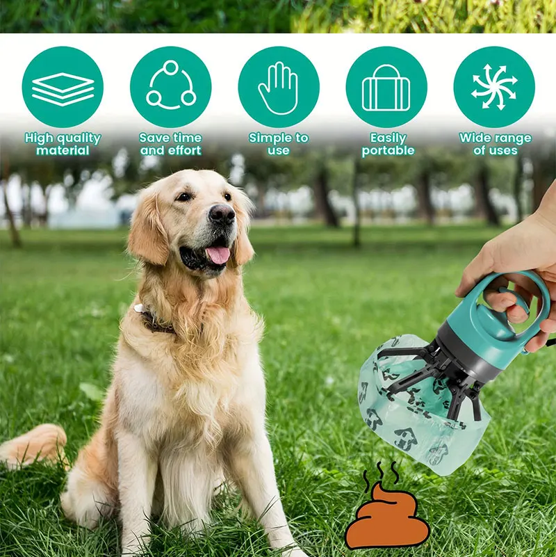 Portable Dog Pooper Scooper with Garbage Bag Outdoor Pet Six-Claw Shit Shovel Shit Pickup Dispenser Dog Collector Cleaning Tool